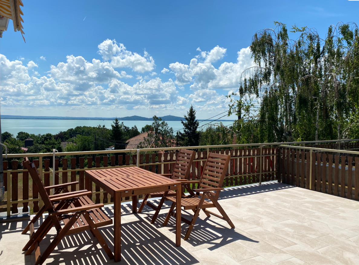 A villa legelőkelőbb szentélye, ahol a Balaton reggeli csillogása ébreszti az érzékeket.